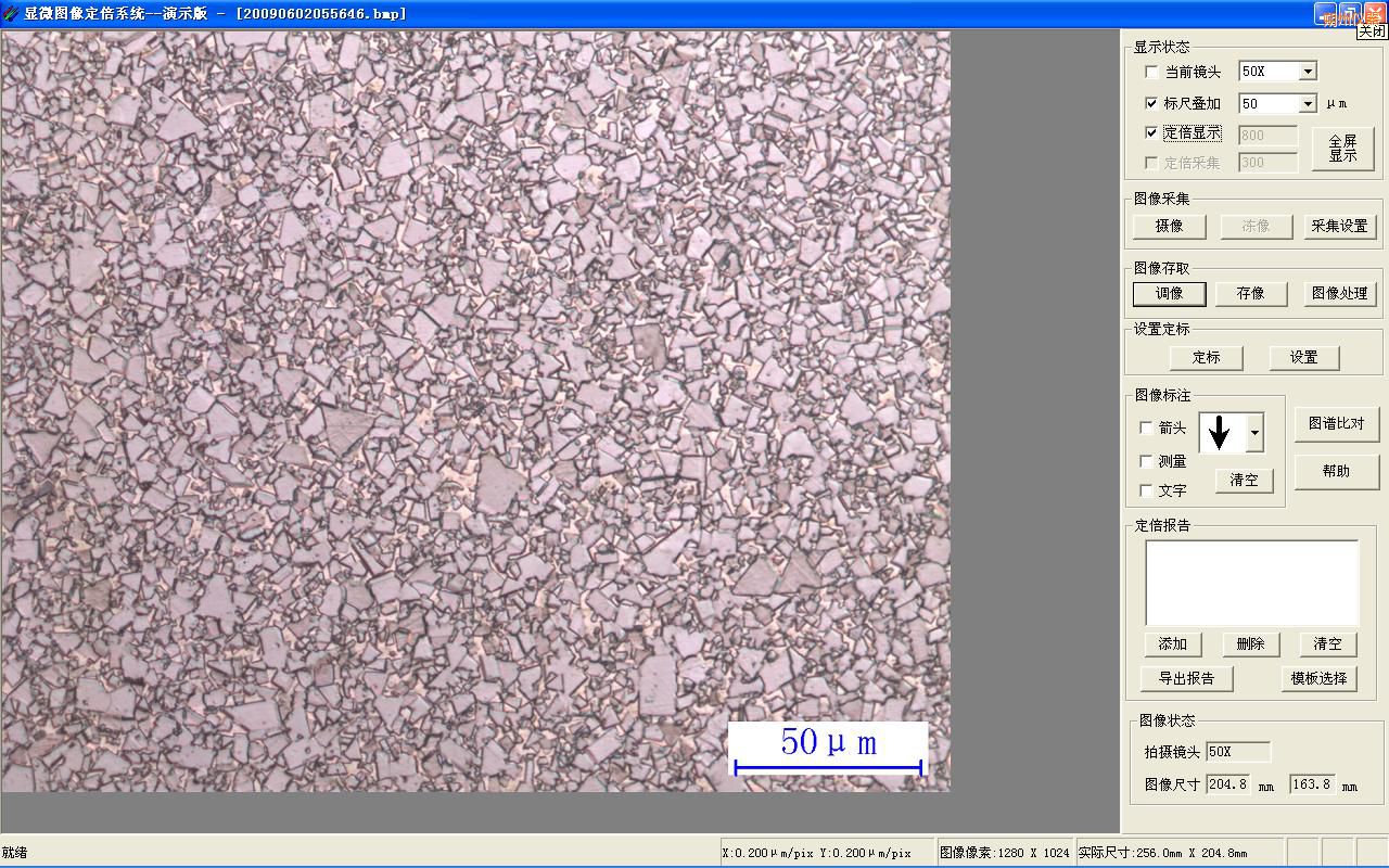 在金相圖像系統(tǒng)中,,常常要進(jìn)行圖像定倍。但傳統(tǒng)的定倍軟件,只有“定倍打印”的單一功能,且打印出的圖片清晰度差,不能滿足金相圖像的尤其是高檔金相圖像用戶對(duì)打印分辨率的要求。 ![]()