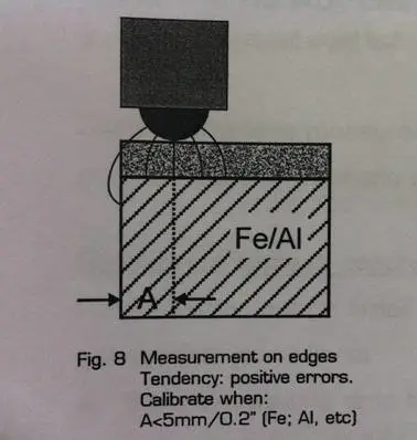 通常會(huì)顯示正偏差當(dāng)曲率半徑小于一定值時(shí)偏差會(huì)較為明顯(鐵磁性基材曲率半徑小于20mm時(shí)導(dǎo)電性基材曲率半徑小于50mm時(shí))。